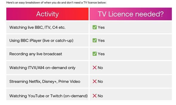 Along with Virgin Media, the licence fee website also breaks down the rules.