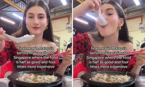 Setelah ia memasukkan sendoknya, baru terlihat campuran sayuran dan bumbu kacang. Dalam kurun waktu 24 jam, videonya langsung ramai diserbu netizen yang penasaran.