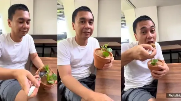 Raditya Dika kembali pamer makanan unik. Setelah merasakan pengalaman gastronomi bersama temannya, kini giliran gado-gado bentuk pot!