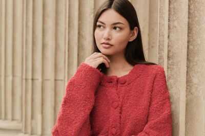 The Boucle Pocket Crew Neck Cardigan With Woolis available in two hues - chocolate brown and red - offering a subtle yet stylish way to embrace the festive season.