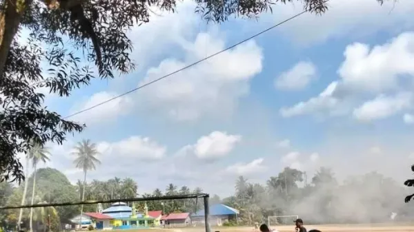 Hari Minggu (2/11/2025) pagi, para panitia turnamen sepakbola Ungar Cup 2025 mernggelar gotong royong membersihkan lapangan bola.