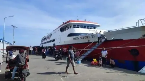 Kapal ini bisa mengangkut rutusan penumpang yang akan berlayar ke tujuan masing-masing.