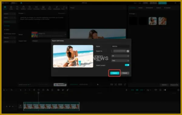 When you have your design, click the three horizontal lines at the top-right corner of the preview panel. Go to the menu by clicking on export still frames. Add a project name, select your preferred resolution, 4K or sometimes 8K, which is very high as thumbnails, and simply press the Export button. CapCut will save the thumbnail to your device, which can instantly be transferred and shared on your platforms.
