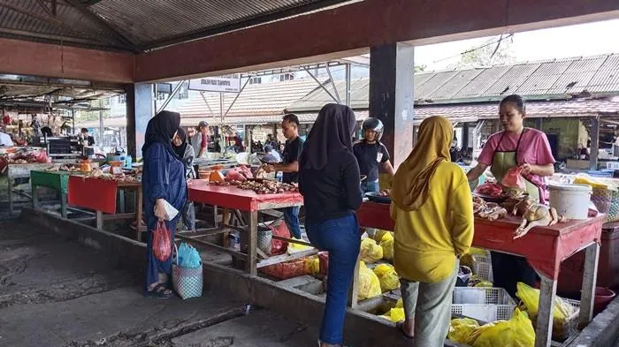 Udara masih lembap, lantai pasar basah oleh sisa hujan malam, dan lapak-lapak baru mulai dibuka.