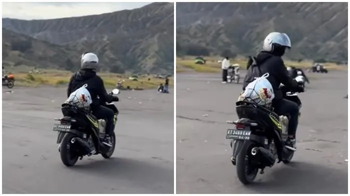 "Seorang pemotor berpelat KT berhasil menembus kawasan Bromo setelah menempuh perjalanan lintas pulau dari Samarinda. Aksi tersebut pun menuai perhatian warganet. Banyak yang mengaku kagum dengan tekad dan konsistensi sang pemotor, mengingat jarak Kalimantan–Jawa bukanlah perjalanan singkat," ujar akun @balikpapanmedsos di caption unggahannya.