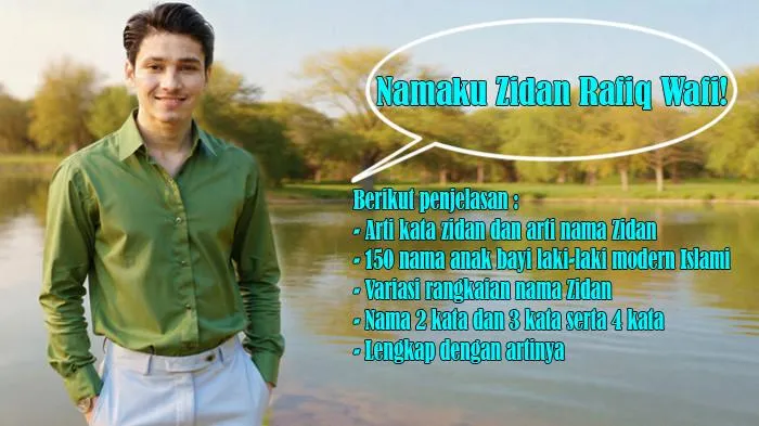Berikut 150 nama anak bayi laki-laki modern Islami dengan variasi rangkaian nama Zidan terdiri dari 50 nama 2 kata dan 50 nama 3 kata serta 50 nama 4 kata lengkap dengan artinya :