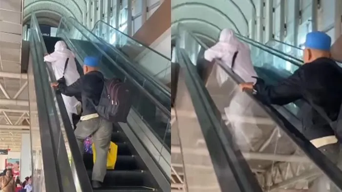 Melihat kedatangan KN yang menggunakan seragam pramugari dan menyeret koper, seorang pria yang diduga ayahnya tampak begitu semringah.