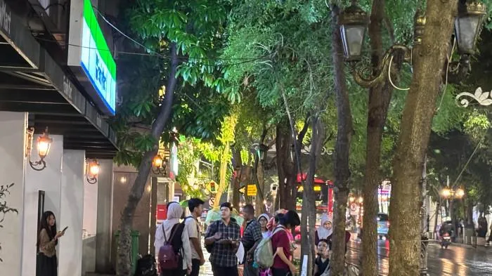 Deretan anak muda, komunitas, hingga wisatawan tampak menikmati suasana sambil berjalan kaki, duduk santai, atau berfoto di sepanjang koridor jalan bersejarah tersebut.