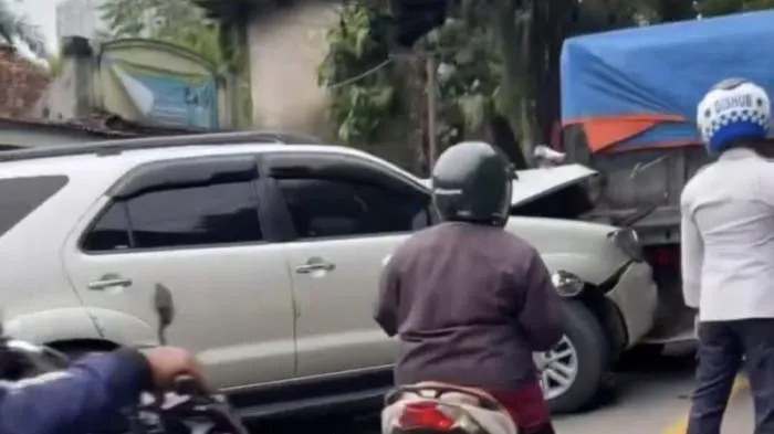 Namun konsekuensinya, bagian depan mobil Fortuner milik Erika mengalami kerusakan parah.