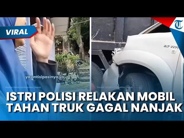 Istri anggota polisi itu menuai pujian lantaran rela menjadikan mobil Fortuner miliknya sebagai tameng untuk menghentikan laju truk bermuatan pasir yang gagal menanjak.