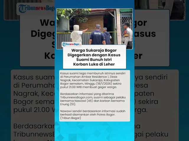 TRIBUNJAKARTA.COM - Insiden suami bunuh istri menggegerkan warga Perumahan Ambar Residence 1, Desa Nagrak, Kecamatan Sukaraja, Kabupaten Bogor pada Minggu (18/1/2026) malam.