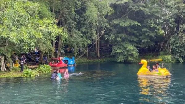 Kesegaran air alami ini membuat pengunjung betah berlama-lama bermain air di tengah suasana hijau yang menenangkan.