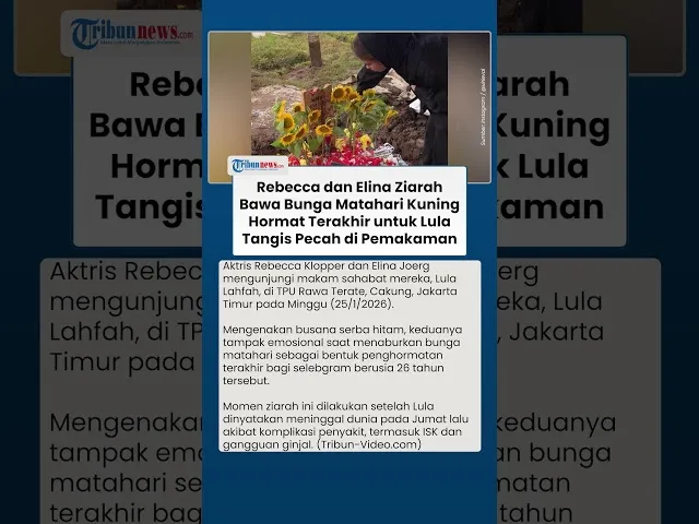 Download aplikasi berita TribunX di Play Store atau App Store untuk dapatkan pengalaman baruTRIBUN-VIDEO.COM - Kabar duka menyelimuti dunia hiburan Tanah Air.Selebgram Lula Lahfah meninggal dunia pada Jumat (23/1/2026) dalam usia 26 tahun.Lula Lahfah ditemukan sudah dalam keadaan meninggal di apartemen kawasan Jakarta Selatan.Sebelum mengembuskan napas terakhir, kekasih Reza Arap ini mengidap sejumlah penyakit di tubuhnya. Kepergian Lula meninggalkan duka mendalam bagi keluarga dan kerabat artis, hingga akhirnya mereka datang ke pemakaman mendiang di TPU Rawa Terate, Cakung, Jakarta Timur, Minggu (25/1/2026).Pantuan Tribunnews, Rebecca Klopper dan Elina Joerg kembali mengunjungi makam Lula Lahfah.Mengutip YouTube Intens Investigasi, Minggu (25/1/2026), Rebecca tampak mengenakan setelan busana berwarna hitam.Aktris blasteran Australia-Jawa ini juga menutupi kepalanya dengan selendang.Senada dengan Rebecca Klopper, Elina Joerg pun menggunakan busana serba hitam.Tak hanya berdua, terlihat pula ibunda Lula Lahfah, Tatu di pemakaman putrinya.Sahabat-sahabat Lula tersebut bahkan membawa bunga matahari saat berziarah.Lula Lahfah Ungkap Kronologi Idap ISK sampai DirawatLula Lahfah pernah mengungkap kronologi dirinya mengalami Infeksi Salurah Kemih (ISK) yang membuatnya dirawat di rumah sakit awal tahun 2026 lalu.Sebelum meninggal dunia, Lula Lahfah sempat dirawat selama satu minggu dengan sejumlah diagnosis penyakit."Borongan, ISK, usus bengkak radang, batu ginjal, gerd," ujarnya menjawab pertanyaan penggemar melalui platform TikToknya.Lula juga menjawab kronologi sakit ISK yang dideritanya saat itu."Awalnya meriang dan sebadan-badan ngilu, sendi-sendi ngilu, dipegang aja ngilu, terus demam tinggi," tandasnya lewat Instagram Storynya yang kini beredar di media sosial, dikutip Minggu (25/1/2026).Setelah itu, pacar Reza Arap ini mengeklaim perutnya kram sampai napasnya pun sakit."Terus perut aku kram banget, napas aja sakit," tukasnya.Ia menyebut, sumber sakit itu dari bakteri di urine-nya."Terus pas ditelusuri bakterinya dari urine. Jadi aku ISK," tambah perempuan 26 tahun tersebut.Lula tak memungkiri, ia memiliki riwayat ISK lantaran sering menahan kencing.Dia juga jarang minum."Aku emang punya riwayat ISK karena dulu suka nahan buang air kecil. Nah, aku bingung, aku gak ada gejala anyang2an sama sekali kok bisa ISK, ternyata karena aku kurang minum air putih makanya jadinya perut kram," lanjutnya.Sahabat Dara Arafah ini menyebut sering sekali dirinya lupa untuk minum."Aku tuh entah kenapa emang selalu lupa untuk minum, abis makan me yang seret aja aku bisa gak minum. B aja gitu," selorohnya.Malahan, Lula takut jika minum banyak akan membuatnya sering ke toilet."Ditambah karena aku pernah ISK, aku takut kalo minum air banyak-banyak karena takut pengen pipis di saat yang tidak tepat. Contoh lagi di jalan macet tiba-tiba kebelet tuh, duh aku anti banget. Tapi ternyata malah bikin ISK juga karena minum WKWK," imbuh anak pertama dari dua bersaudara itu.Saat itu, Lula juga menguraikan kondisi tubuhnya."Sekarang udah nggak demam, tapi sampe detik ini perut keramku belum hilang. Masih sakit banget jadinya tadi di-CT scan. Semoga aja hasilnya aman-aman aja yaa. Aamiin," harap Lula menutup ceritanya.Artikel ini telah tayang di Tribunnews.com dengan judul Rebecca Klopper dan Elina Joerg Ziarah ke Makam Lula Lahfah, Bawa Bunga Matahari, https://www.tribunnews.com/seleb/7782827/rebecca-klopper-dan-elina-joerg-ziarah-ke-makam-lula-lahfah-bawa-bunga-matahari?page=all&s=paging_new.Penulis: Indah Aprilin CahyaniEditor: Garudea Prabawati(Tribun-Video.com)Program: Tribunnews Update Editor: Nathanael Moer RahardianUploader: Tri Hantoro