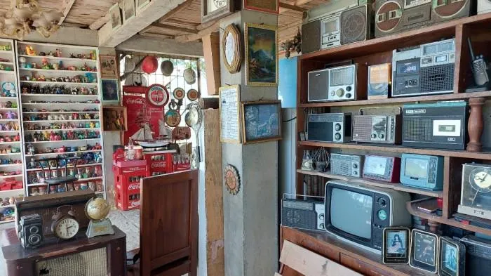 Koleksi tersebut meliputi peralatan rumah tangga lama, televisi tabung, kamera jadul, hingga buku-buku lama.