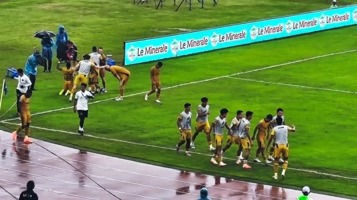 Akhirnya gol yang ditunggu-tunggu tuan rumah hadir pada menit 45+4 setelah serangan balik cepat yang dibangun Mbarga dan Doumbia diselesaikan oleh Privat Mbarga melalui sepakan yang keras dan membentur Komang Teguh sehingga bola masuk ke gawang Nadeo.