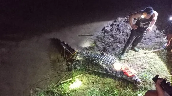 Warga di Desa Buku Utara, Kecamatan Belang, Kabupaten Minahasa Tenggara (Mitra), Sulut, dikejutkan dengan penemuan seekor buaya, Rabu (19/2/2025) malam.