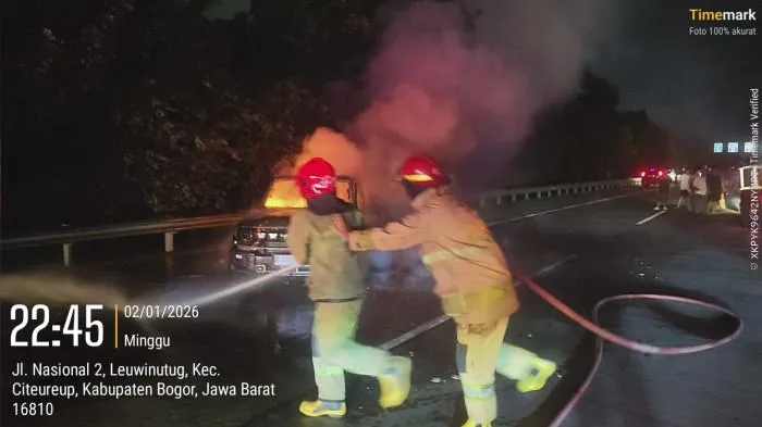 Mobil berpelat B 2503 DS itu sudah dievakuasi petugas.