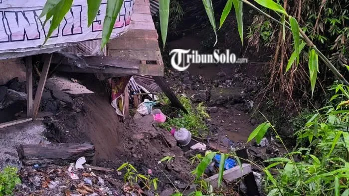 TRIBUNSOLO.COM, KLATEN - Hujan dengan intensitas tinggi memicu tanah longsor yang menyebabkan tiga tempat usaha terdampak di Dukuh Sanggrahan, Desa Demakijo, Kecamatan Karangnongko, Kabupaten Klaten, Senin (16/2/2026).