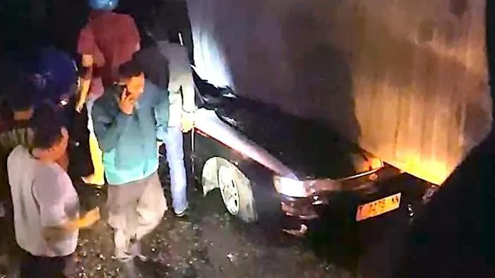 Beberapa detik setelah tabrakan, lampu kendaraan lain mulai terlihat mendekat.