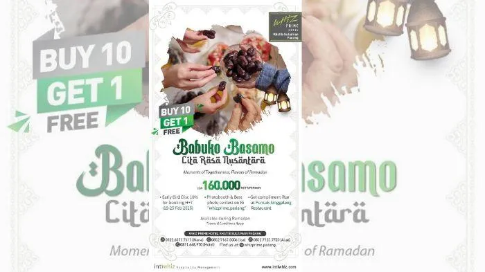 Tak hanya itu, Whiz Prime Padang juga menawarkan paket menginap termasuk sarapan atau sahur dan buka puasa untuk dua orang dengan harga Rp750.000 nett.