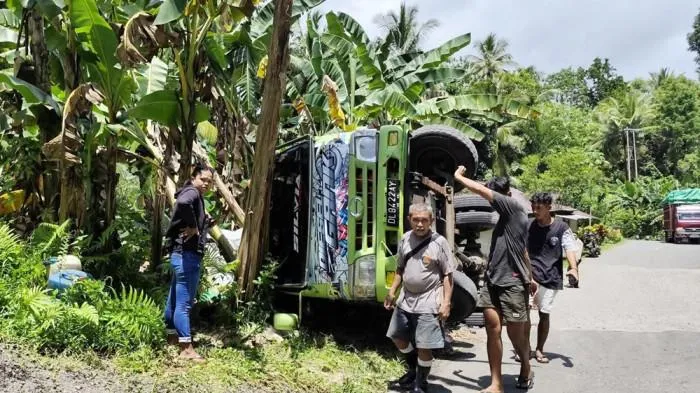 "Telah terguling satu unit truk yang mengangkut ayam hidup kemudian menurut saksi diakibatkan karna truk hilang kendali kemudian tali pengikat muatannya lepas," ujarnya kepada wartawan, Rabu (25/2/2026).