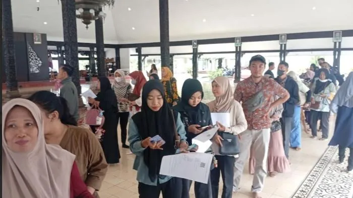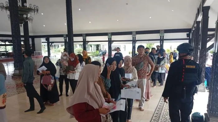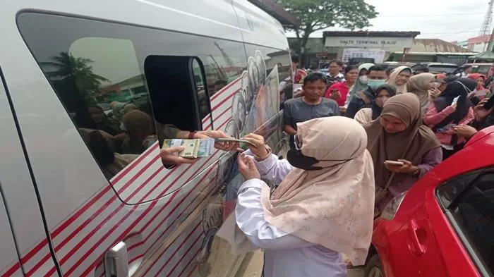 TRIBUNJATENG.COM, BREBES - Ratusan warga Brebes rela antre untuk menukarkan pecahan uang baru di Mobil kas keliling dari Kantor Perwakilan (KPw) Bank Indonesia Tegal, Kamis, (26/02/2026) di Halman Masjid Al Mukaromah Islamic Centre Brebes.