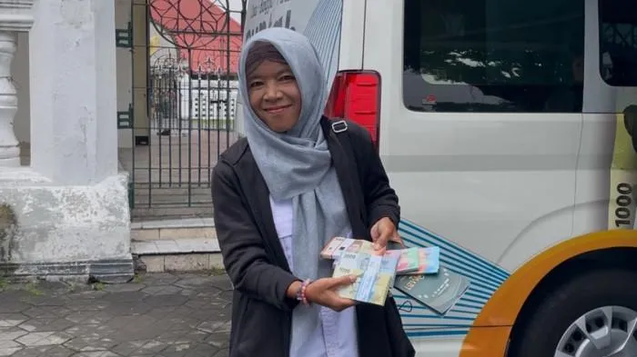 Nadia warga Kelurahan Brebes ini rela war tengah malam sampai 5 kali untuk bisa menukarkan uang baru.