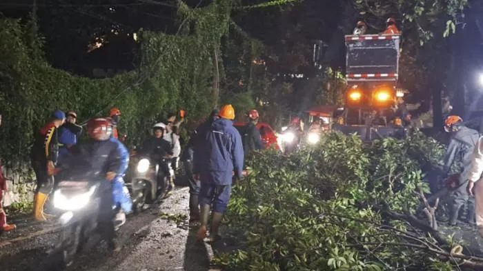 Di lokasi, Kamis pagi, terlihat belasan pekerja melakukan pembersihan dan pemotongan batang pohon untuk membuka kembali akses jalan di kawasan rumah sakit.