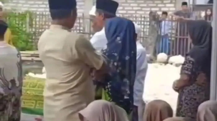 Dalam sebuah video yang viral, terekam ibu-ibu berkerudung biru menagih utang pada keluarga jenazah.