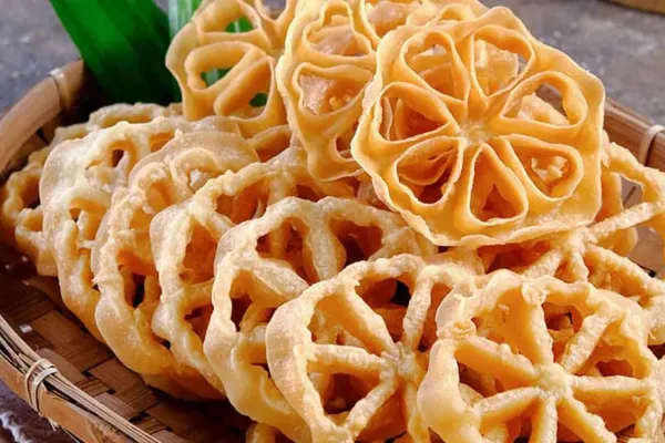 SajianSedap.com -Kembang goyang merupakan salah satu kue tradisional Indonesia yang terkenal renyah dan ringan.