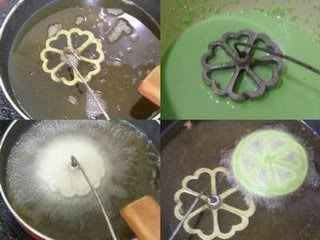 3. Panaskan minyak dalam wajan cukup banyak. Masukkan cetakan kembang goyang ke dalam minyak hingga benar-benar panas.