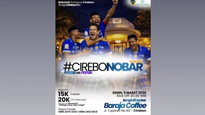 Komunitas Bobotoh Kampus Cirebon menggelar acara nonton bareng (nobar) pertandingan tersebut di Amphitheater Baraja Coffee, dengan harga tiket yang terjangkau mulai Rp 15 ribu.