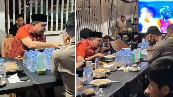 Dalam rekaman video berdurasi singkat tersebut, terlihat Andi Harun duduk di sebuah meja panjang bersama sejumlah petugas kepolisian dan warga sekitar.