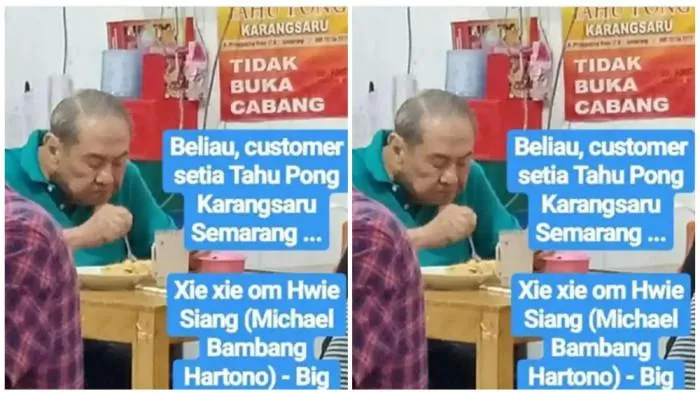 Di penghujung tahun 2019, foto pria yang akrab disapa Hartono terlihat makan di warung Tahu Pong Karangsaru hingga viral di media sosial Twitter (sekarang X).