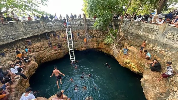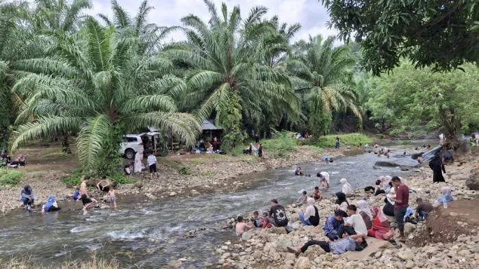 TRIBUN-SULBAR.COM, POLMAN – Objek wisata alam permandian Kali Biru di Desa Battetangga, Kecamatan Binuang, Kabupaten Polewali Mandar (Polman), Sulawesi Barat (Sulbar), ramai pengunjung pada libur Lebaran Idulfitri, Senin (23/3/2026).
