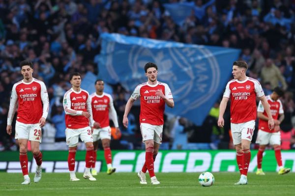 As Manchester City climbed the lengthy staircase to claim the Carabao Cup trophy at Wembley, Mikel Arteta assembled his disheartenedArsenal players on the pitch for a moment of contemplation.