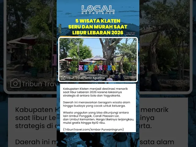 Dengan pilihan wisata yang beragam, mulai dari taman kota, wisata air, hingga candi bersejarah, Klaten bisa jadi destinasi menarik saat libur Lebaran 2026.