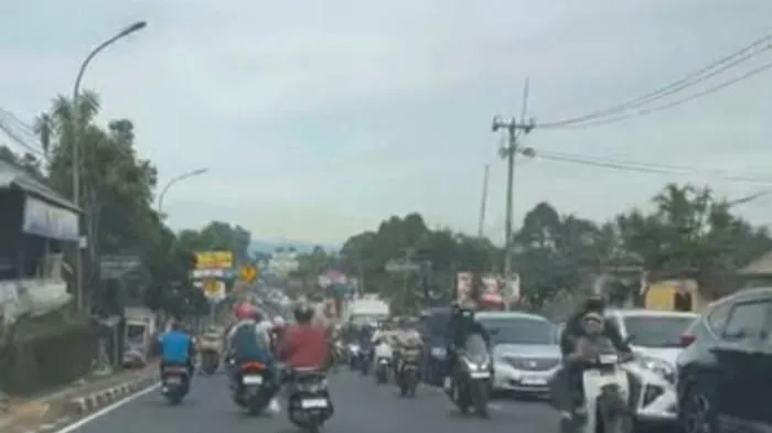 Terpantau kendaraan masih cukup banyak yang melintasi jalur Puncak Bogor baik naik maupun turun pada Kamis (26/3/2026).
