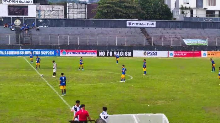TRIBUNMANADO.CO.ID - Persma Manado untuk sementara unggul 1-0 atas PS Kuda Laut Belang dalam lanjutan Liga 4 Piala Gubernur Sulawesi Utara di Stadion Klabat Manado, Sabtu (8/3/2026).