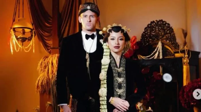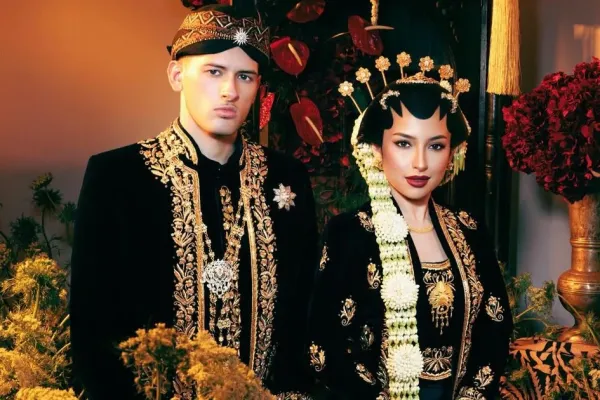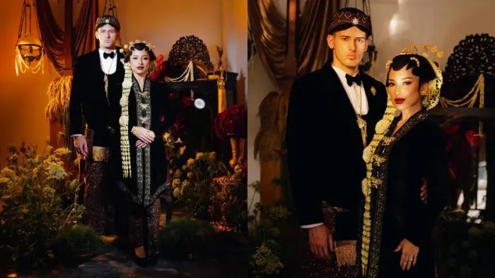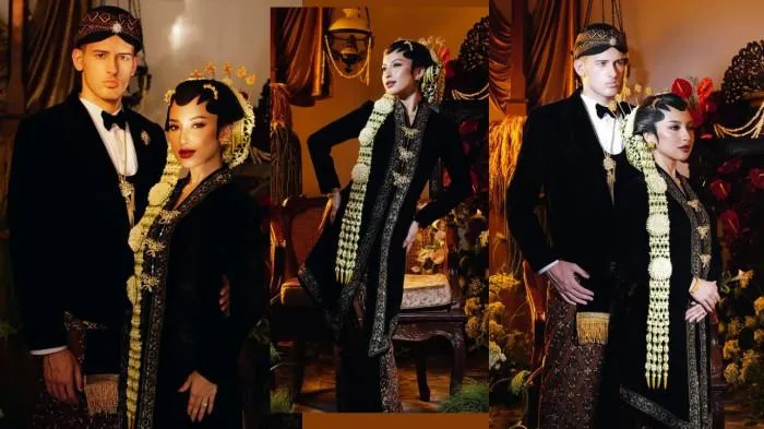 Dalam foto prewedding yang dibagikan, keduanya tampil memukau dengan busana pengantin adat Jawa berwarna hitam yang lengkap, memancarkan nuansa tradisi yang kental sekaligus elegan.