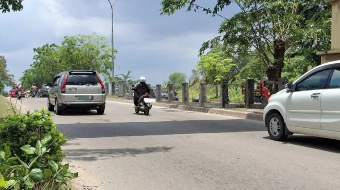 Pantauan di lokasi pada Jumat (3/4/2026) siang, bekas darah korban masih terlihat di aspal dan telah ditutup dengan pasir.