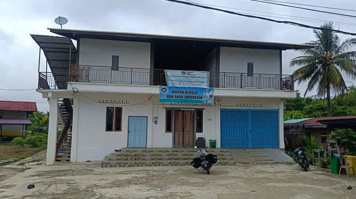 Berbeda dari bangunan Satuan Pelayanan Pemenuhan Gizi (SPPG) atau dapur MBG pada umumnya, bangunan dapur MBG di HSU ini memiliki bentuk konstruksi bak istana.
