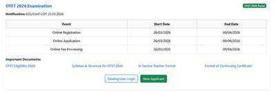 OTET 2026 Registrations: Important Dates