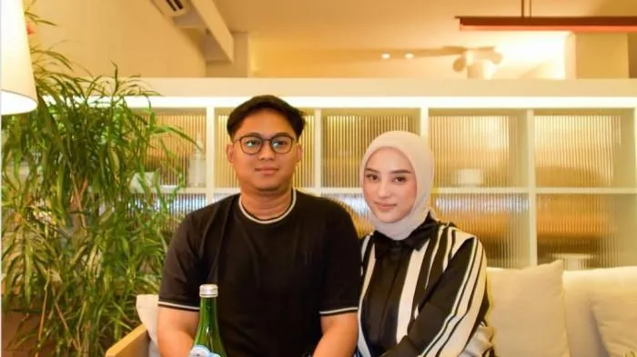 Pasangan yang menikah pada 14 Desember 2021 ini, tampak duduk berdampingan di sebuah restoran.