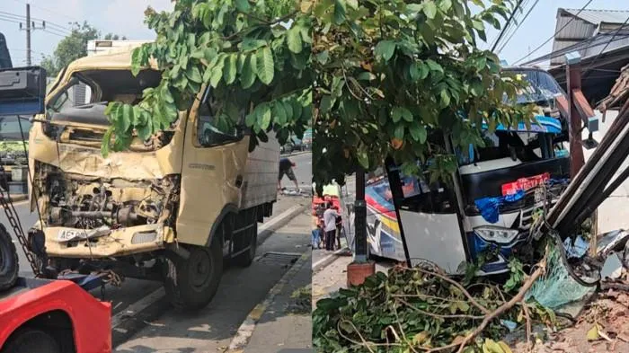 Insiden ini melibatkan empat kendaraan yang terdiri dari truk tronton bermuatan pupuk, truk pengangkut ayam, truk bermuatan cabai dan buah, serta bus Sinar Jaya.