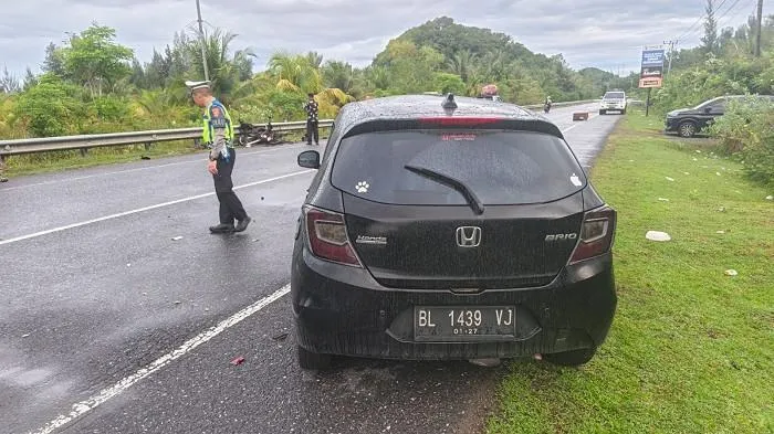 Pada saat yang bersamaan, sebuah mobil tangki CPO dengan nomor polisi BM 8089 ZU yang dikemudikan M. Farhan Arif Andi, warga Langkat, Sumatera Utara, sedang terparkir di bahu jalan sebelah kiri dari arah yang sama.