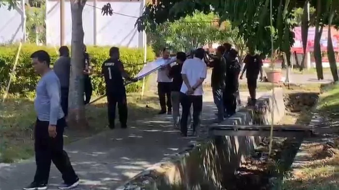 Mereka membersihkan sampah yang menyumbat parit, memungut sampah plastik di area taman, hingga memangkas rumput liar menggunakan mesin pemotong rumput.