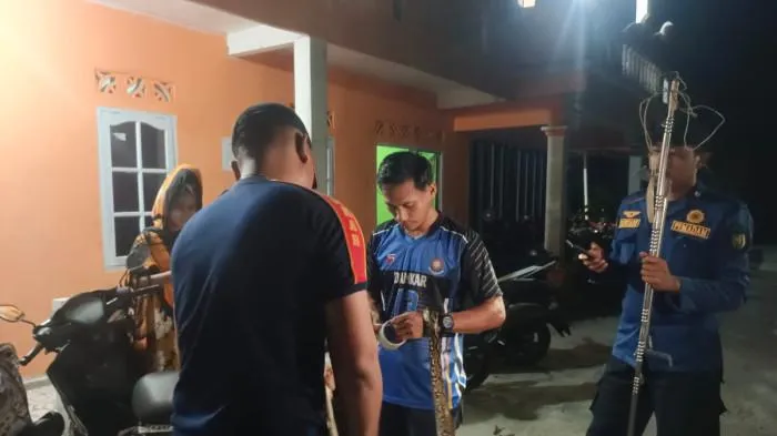 Ia menjelaskan, ular tersebut memiliki panjang kurang lebih dua meter dan merupakan jenis sanca yang biasanya hidup di habitat alami seperti hutan, sungai, dan kawasan liar.