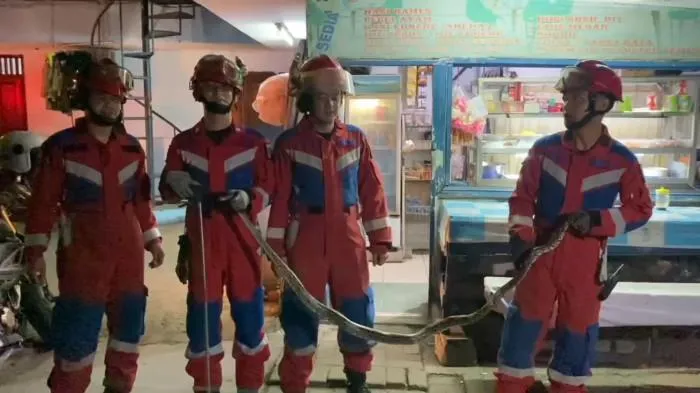 Sebanyak lima petugas pemadam kebakaran dari Suku Dinas Penanggulangan Kebakaran dan Penyelamatan Jakarta Utara kemudian datang ke lokasi untuk melakukan penanganan dan berhasil mengevakuasi ular tersebut dengan aman.