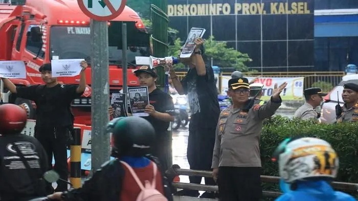 Diguyur Hujan, Polresta Banjarmasin Tetap Kawal Aksi Damai Kamisan